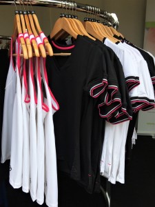 All four girls in our group opted for a skirt (or skort), with colours ranging from the gorgeous white and pale blue two-piece chosen by Natalie, the cute white Tour skort and matching fuchsia trimmed tank chosen by Jenny and the sleek black Monique skirt and Nicole V-neck Tee worn by Beth. We all unanimously agreed we felt like professionals in our fab tennis outfits. Do you think we look the part?