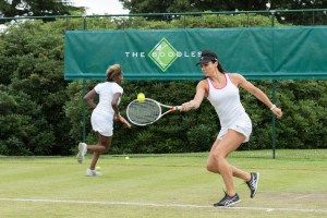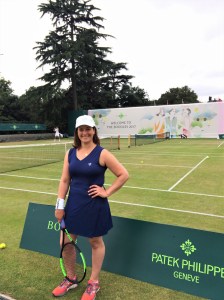 So on to the day itself. First stop was the PlayBrave tent, where I was kitted out in a fab blue Ursula wrap dress, white Shadow cap and matching white wristband – I do love a sweatband! I never thought I would play sport in a skirt, but the lightweight fabric and body-skimming fit meant I felt more comfortable than I would in my usual sports leggings and t-shirt. To protect my modesty I also chose a pair of white Kara ball shorts, with special inverted pockets. It is amazing how a superior quality sports kit can make you feel so special. I genuinely felt like a pro.