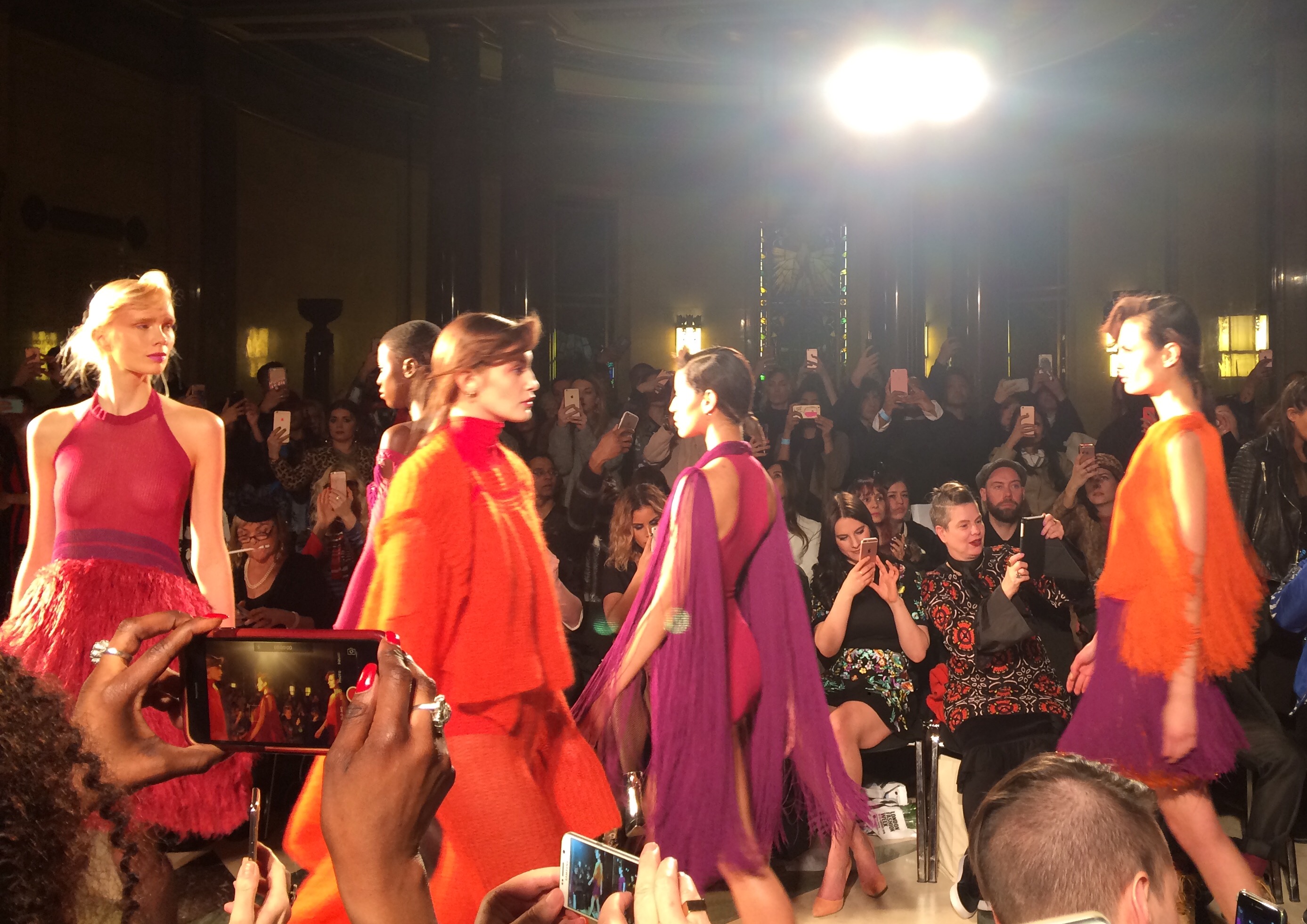This week I was lucky enough to be invited to the wonderful Fashion & Textile Museum on Bermondsey Street for the launch of the Gudrun Sjoden exhibition ‘Four Decades of Colour and Design’. I am quite ashamed to say that despite all my years of living in London (and many hours spent on Bermondsey Street) I had never actually been inside this beautiful, multi-coloured Zandra Rhodes owned tribute to fashion. But now I have and it does not disappoint. Accompanying the bold artwork, was a deliciously colourful breakfast of rainbow lattes, flower-filled granola pots and goat cheese and red pepper muffins. I mean… how can you resist when food looks this pretty?!