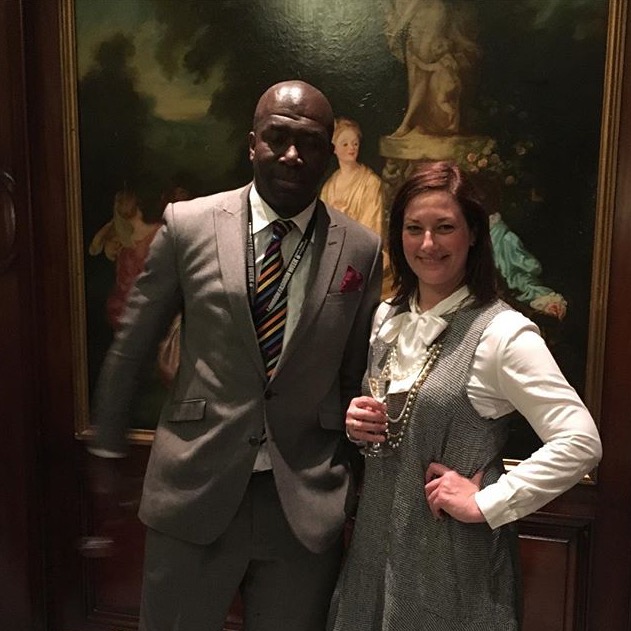 The inspirational Gudrun poses in front of one of her prints and outside the colourful Fashion & Textile Museum on Bermondsey Street.