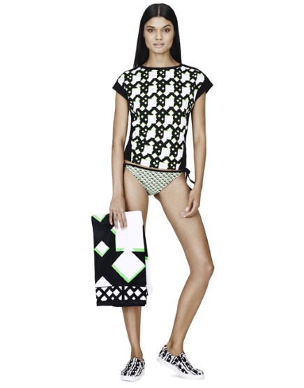 As well as signature clashing-print fit-and-flare dresses, assymetric minis and neoprene tops, the 57-piece collection also includes swimwear, bags and some fabulous sunglasses. And all at purse-friendly prices. The only downside is that half the world will be purchasing these pieces online, so you may have some hefty competition. Best set the alarm early next Sunday and have your best trigger finger ready for some serious statement shopping.