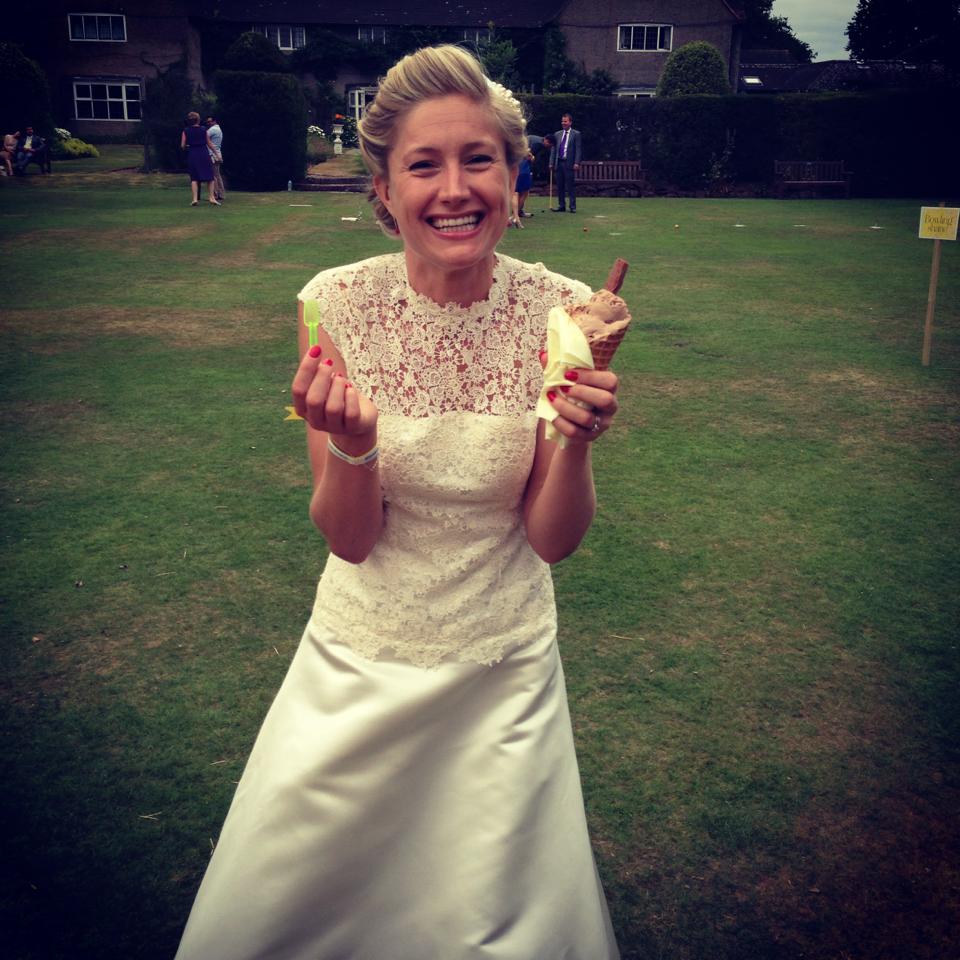 The gorgeous bride Davina enjoying her ice-cream (image by Hayley Young)