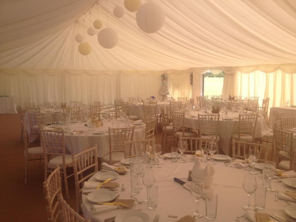 The overall colour scheme was yellow, with a highlight of blue, and an extra theme of cricket also ran through the decorations. Table names were printed onto mini cricket bats and as per the finest summer tradition, there was a reference to fetes that saw games on the lawn including a coconut shy, skittles and even a traditional ice-cream stand.