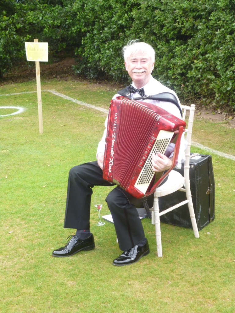 Guests enjoyed champagne on the lawn accompanied by a very happy accordion player
