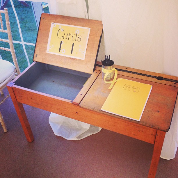 School desk for the card collection and wedding book (image by Zelda Cave)