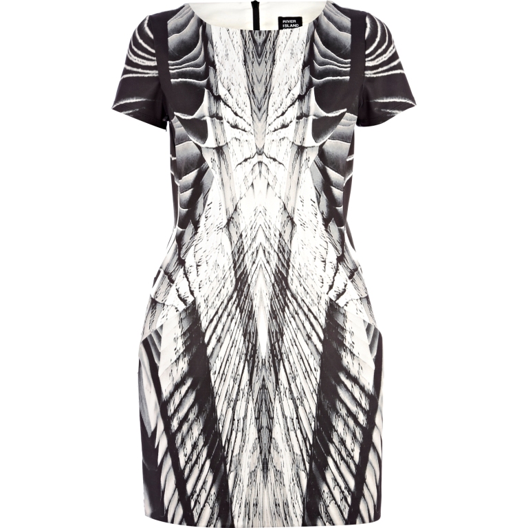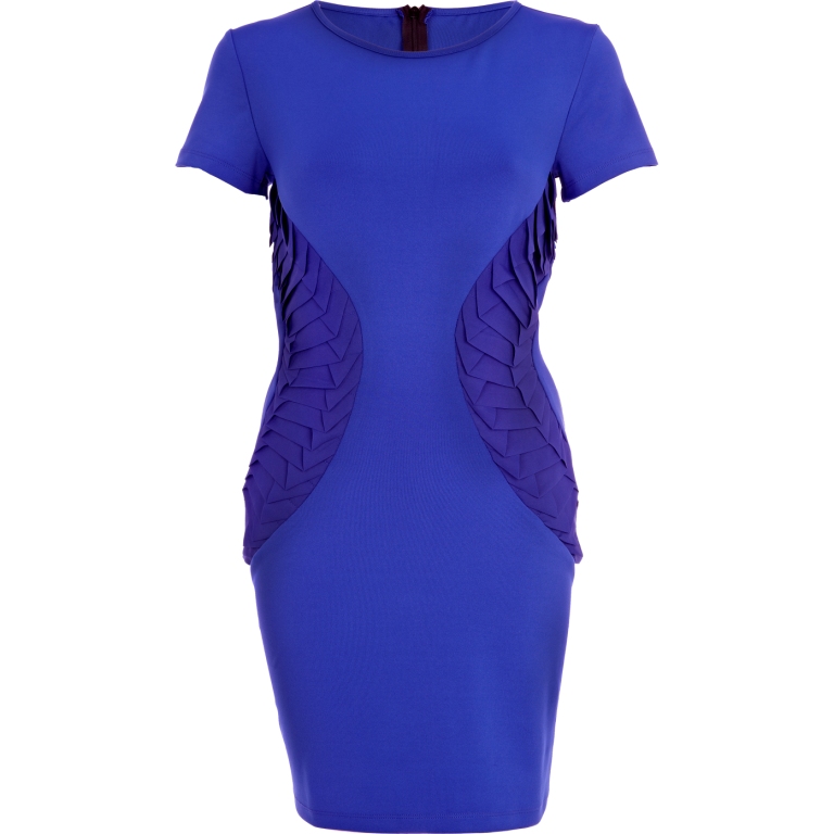 From top: Structured printed dress, £80; cobalt blue dress, £60; black dress, £60, all Georgia Hardinge for River Island AW13.