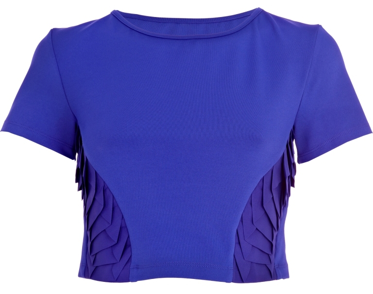 From top: Printed leggings, £30; printed top, £35; cobalt blue crop top, £35, and cobalt blue miniskirt, £40 (both also available in black), all by Georgia Hardinge for River Island AW13