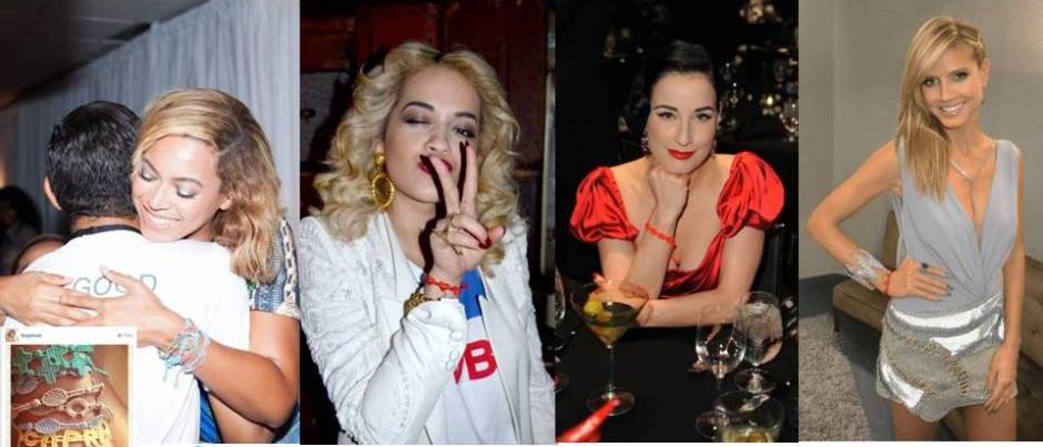 Main holding image features Beyonce, Rita Ora, Dita Von Teese and Heidi Klum in Cruciani Bracelets.  For more info and to purchase online go to: www.crucianibracelets.co.uk
